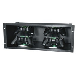 Convenient method for rackmounting portable media players, and electronic accessories • Fits most popular models of MP3 players and satellite radio receivers (7-5/16” useable depth, 5-7/8” useable height, 4 rackspaces tall) • Accommodates one or more players (customer supplied docks) • Optional rear accessory shelf can hold power bricks or other devices • Installed grommets protect cords