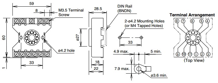 IDEC - Standard DIN rail mount Relay Socket 10A 300V